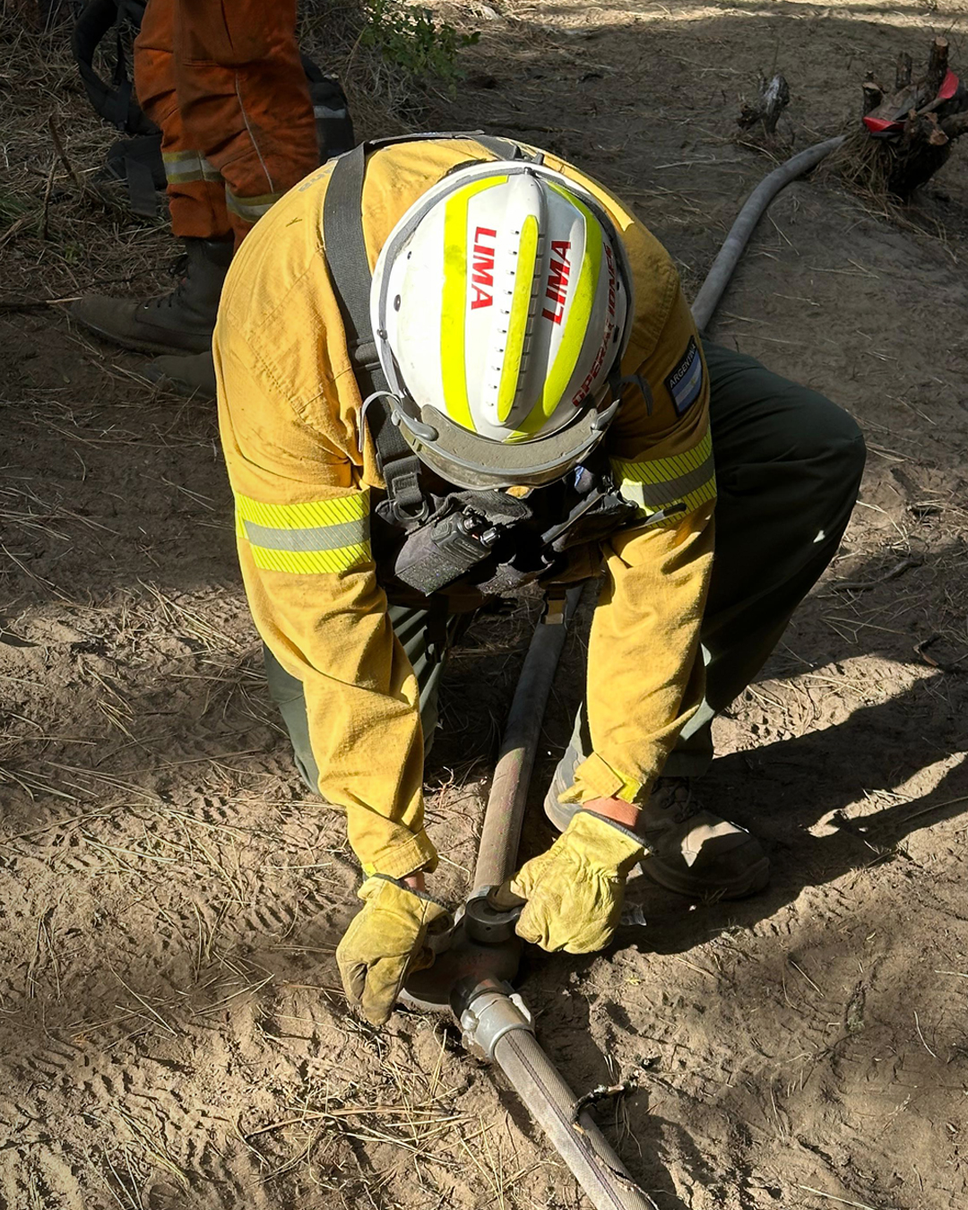 Durante las jornadas de trabajo, el personal de la Agrupación Serrana desarrolló tareas de ataque indirecto mediante la construcción y consolidación de fajas cortafuegos, ensanche de brechas, uso de herramientas de zapa y motosierras, tendido de líneas con motobombas de alta presión, enfriamiento y liquidación de puntos calientes. La Agrupación aportó tres motobombas, permitiendo realizar tendidos de hasta 8.400 metros de mangueras en sectores de difícil acceso, lo que resultó clave para el avance de las tareas de contención.